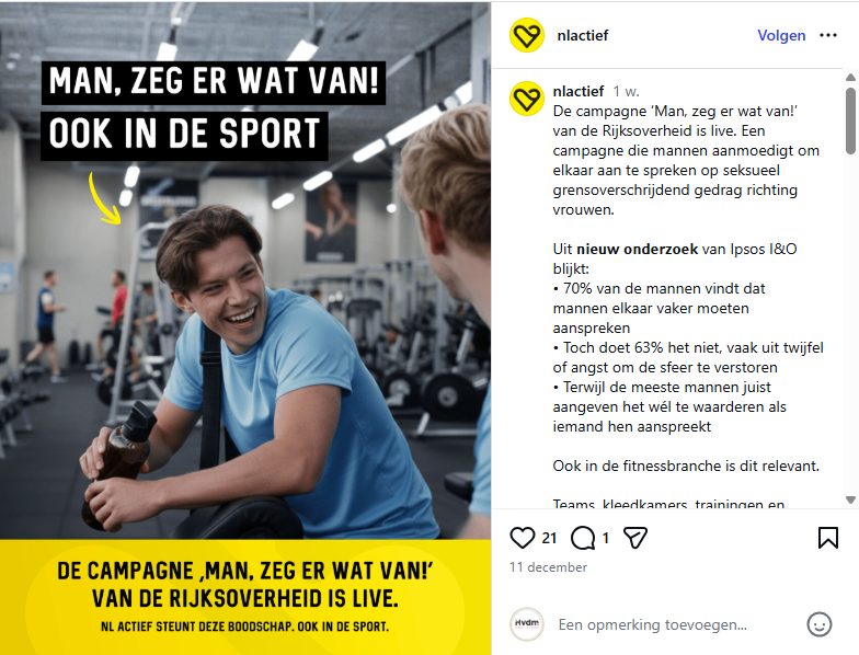 Seksueel grensoverschrijdende opmerkingen richting vrouwen komen ook in de sport voor. Vaak zijn het mannen die ze maken. Mannen kunnen een belangrijke rol spelen bij het verminderen van dit gedrag, door elkaar vaker aan te spreken.