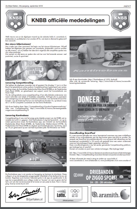 - Pagina KNBB officiële mededelingen met aandacht voor Kantinebaas, Competetitieveiling & crowdfunding SmartPool