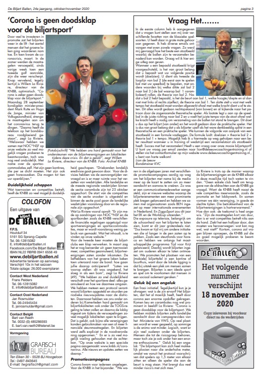 In de digitale editie oktober/november 2020 van De Biljart Ballen o.a.