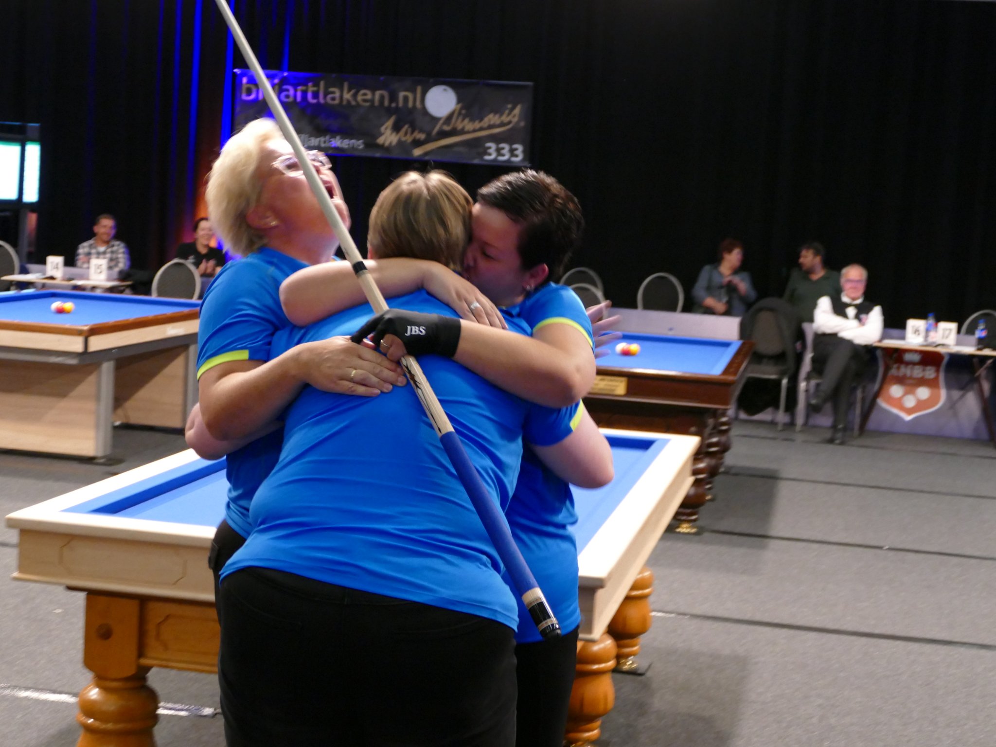 Martien: “Een paar weken geleden vroeg het damesteam Treva/Delta Zuid West, bestaande uit Cynthia van Peer, Sylvia Eckel en Carolien Eversdijk, of ik niet voor hun wilde arbitreren op de afsluitende dag van de Simonis Biljartlakens Landsfinale. Ja natuurlijk wilde ik dat.”