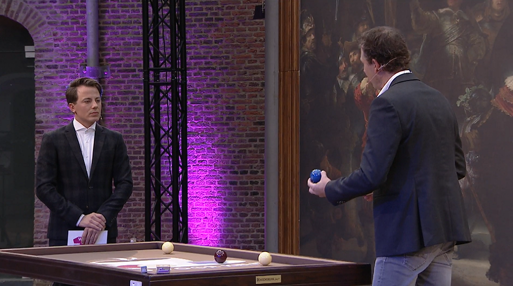 Het was in deze prachtige setting, voor een schitterend fotobeeld in ongekend hoge resolutie van de Nachtwacht, dat KNBB-directeur Willem La Riviere minutenlang Tijd voor Krijt mocht presenteren. De speciale Tijd voor Krijt tafel direct voor de Nachtwacht (met grote dank aan Heemskerk!) maakte grote indruk op de kijkers, en Willem kreeg alle tijd om uit te leggen waarom Tijd voor Krijt voor ouderen van zo'n groot belang is, en op welke wijze (antwoord: met mobiele tafels in sportkantines, een kop koffie, alles in fraai design, en aanvoerders om enthousiasme en laagdrempeligheid te verzekeren) dit zal gaan worden uitgerold in de komende tijd. En, waarbij Willem een mooi doel bekend maakte: in 2022, het jaar dat de KNBB 111 jaar bestaat, Tijd voor Krijt in 111 kantines!