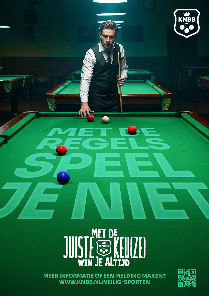 Na vandaag ontvangen alle bij de KNBB aangesloten pool- en snookercentra een enveloppe met campagnemateriaal van de campagne “Met de juiste keu(ze) win je altijd.“ In de enveloppe zitten posters en een tafelkaart, bedoeld om zichtbaar aandacht te vragen voor respect, sportiviteit en een sociaal veilige sportomgeving.