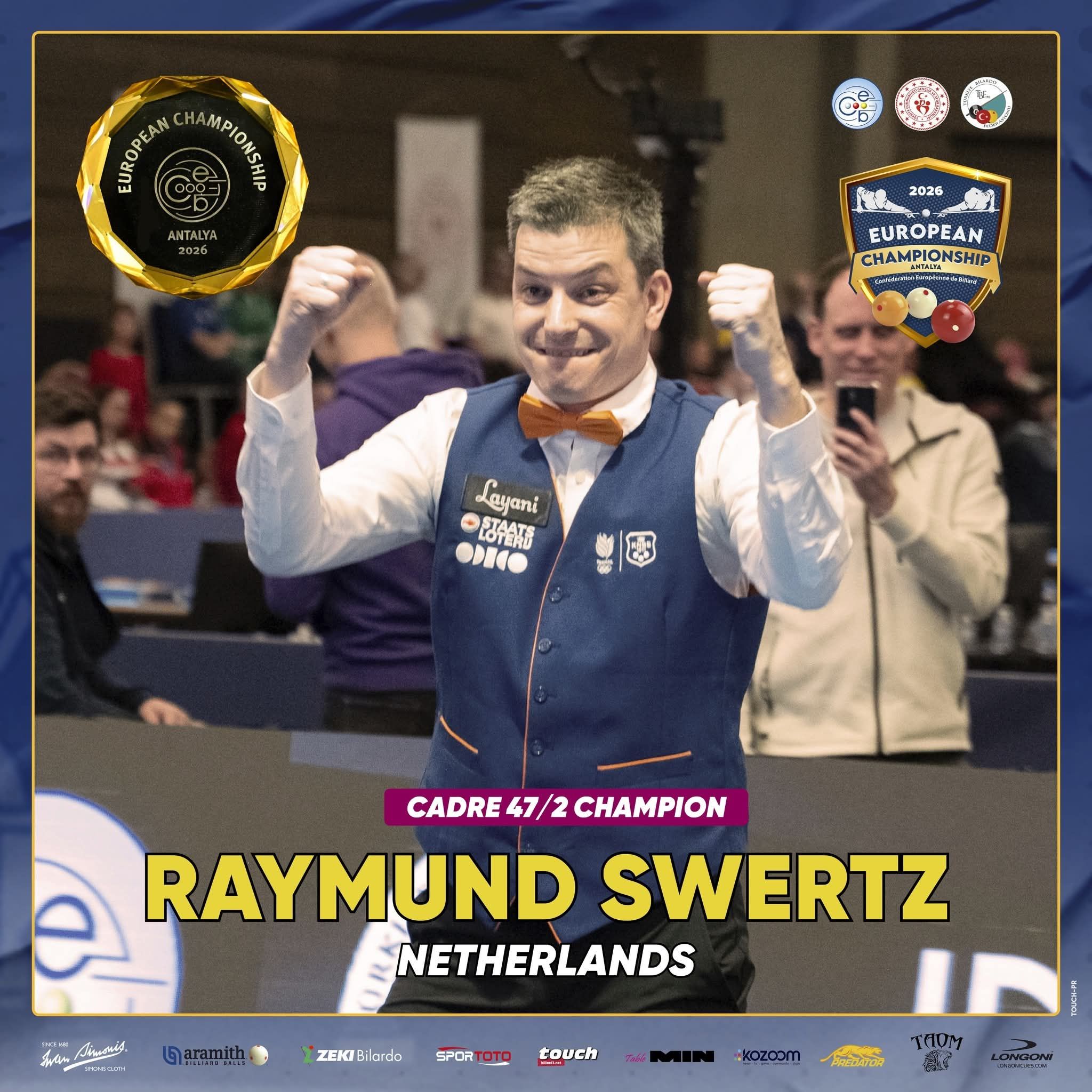 De Europees Kampioen Kader 47/2 is Raymund Swertz!