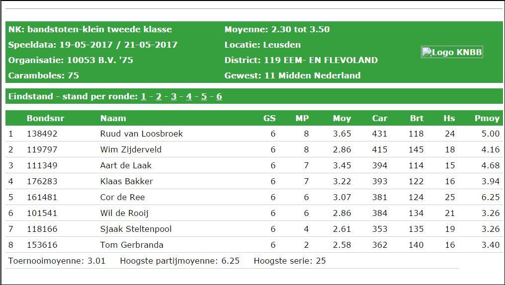 Namens de KNBB, complementen aan de organisatie, en felicitaties aan kampioen Ruud van Loosbroek - die op moyenne is gepromoveerd naar de eerste klasse.