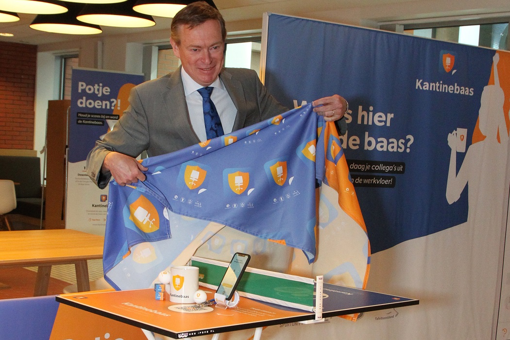 In zijn eigen bedrijfskantine werd minister Bruins uitgedaagd om een potje te pingpongen, darten én (pool)biljarten en lanceerde hier de Kantinebaas app. Gedurende deze hele werkweek zullen in de kantine van het Ministerie van Volksgezondheid, Welzijn en Sport speelmaterialen staan om het kantoor in beweging te krijgen. De Kantinebaas app, een initiatief van de Nederlandse Tafeltennisbond (NTTB), de Koninklijke Nederlandse Biljart Bond (KNBB), de Nederlandse Dart Bond (NDB) en digitaal sportmarketingbureau Sportunity, helpt ze daar een handje bij.