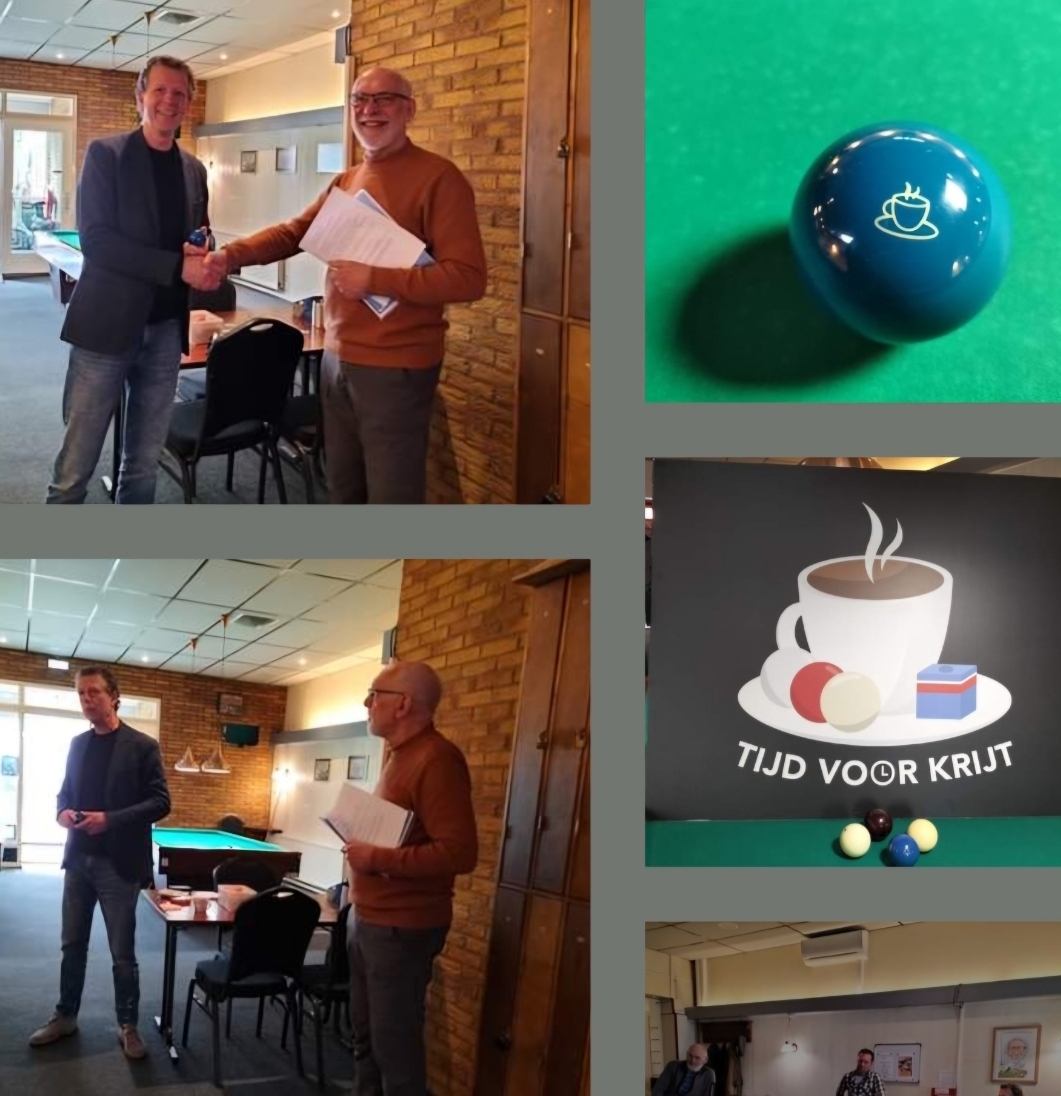 “Zoals het programma van de KNBB bedoeld is, gebeurde ook. Vaste gasten die oude bekenden binnen zagen komen die jaren geleden zijn gestopt, of ooit eens tegen diegene gespeeld hebben op een toernooi in het verre verleden. Onderling uitleg aan elkaar gegeven, en zelf heb ik ook even gebiljart uiteraard.”