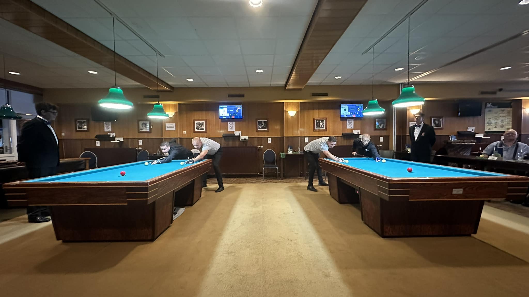 In Poule 2 heeft Kaderteam van der Wilt helaas afscheid moeten nemen van Hans de Vries, aimabele man. Geweldige 4e man, ”Van Boven”, zal hij jullie best in de gaten houden. Hans kwam nog tot 2 winst en 2 verlies partijen. Dennis Bouwhuis pakte in ronde 109 de winst in 3 beurten,140-3-46,66. Ricardo Diters viel op met 2 partijen 57/2 in 5 beurten, 200-5-40,00.