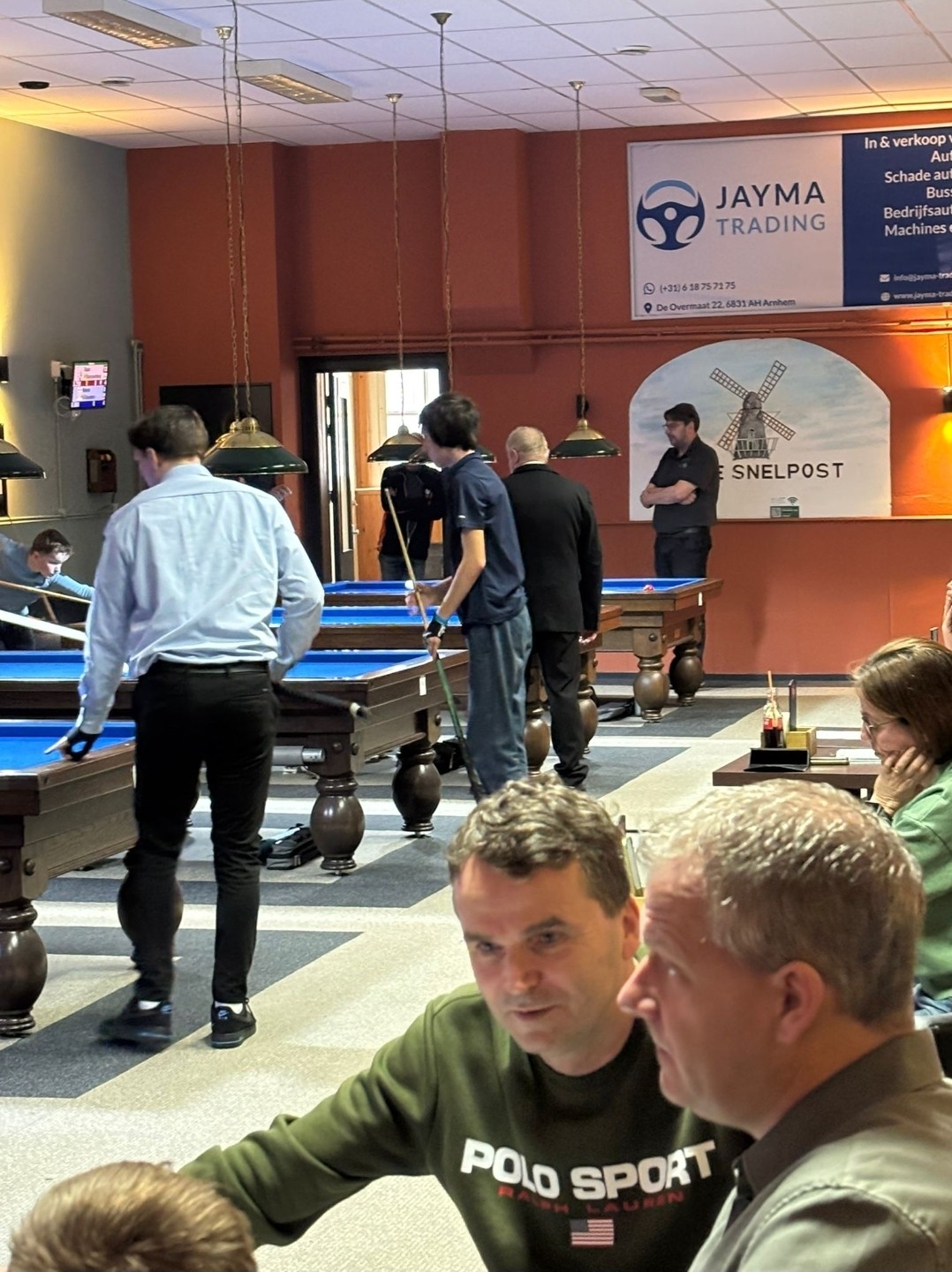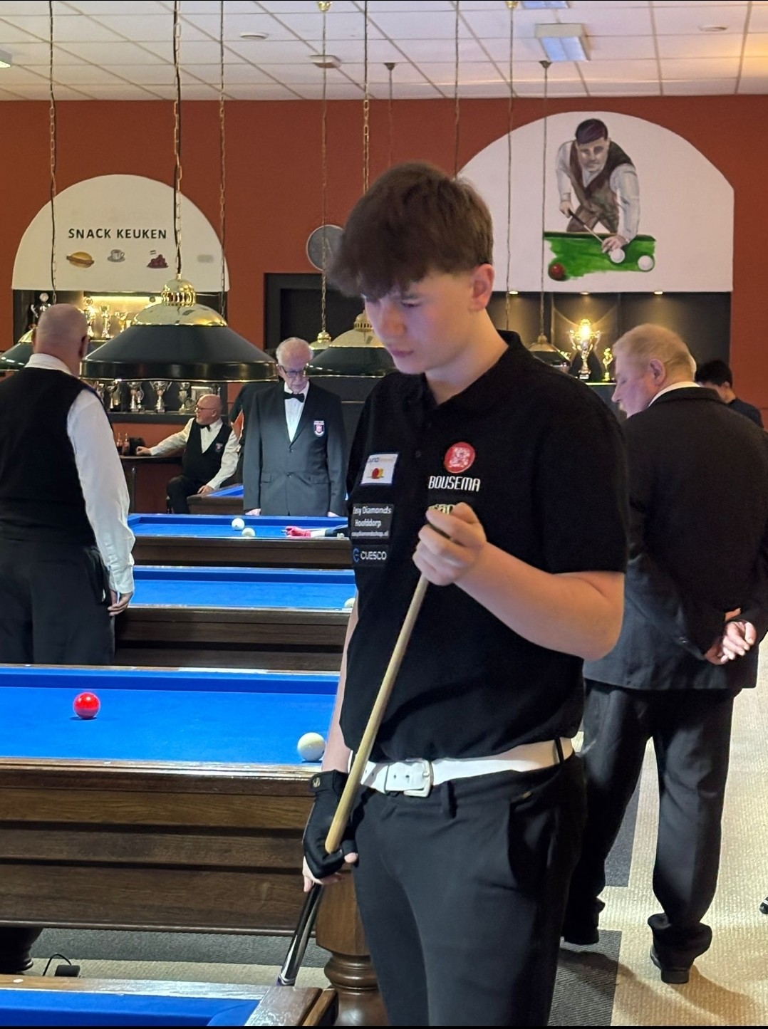 vonden de leden van de Jeugdcommissie die coaching als specialiteit hebben. Hij biljart nog maar 5 maanden en deed voor het eerst mee in deze vierde Jeugd GP. Dex Veldman behaalde 6 setpunten met een carambolepercentage van 83,333 en een moyennepercentage van 156,9. Deze cijfers waren niet de reden voor het opvallen maar het was zijn benadering van het spel, zijn concentratie, zijn afstoot, zijn tempo, kortom alles behalve het çijfermatig resultaat viel de commissie leden in positieve zin op.