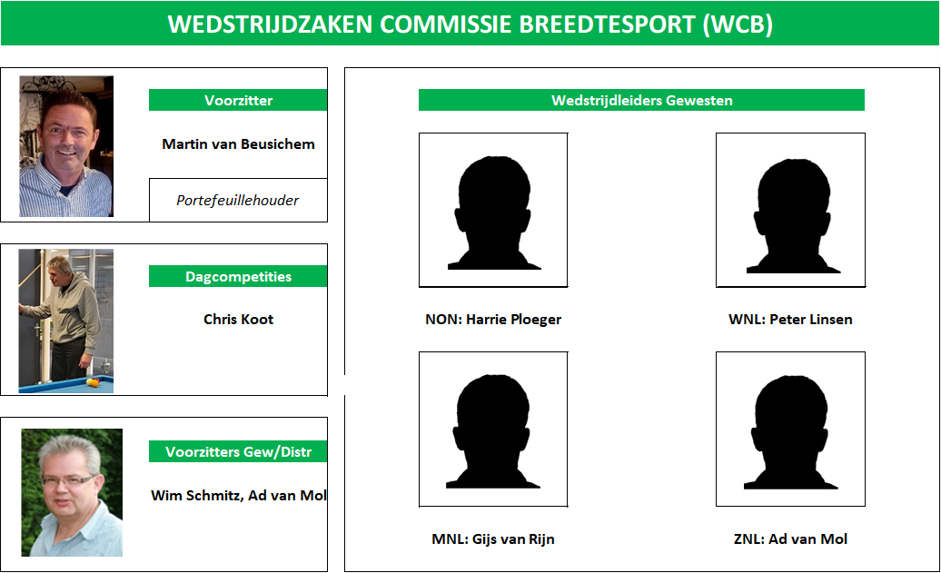 De commissie Wedstrijdzaken Breedtesport (WCB) bestaat uit:
